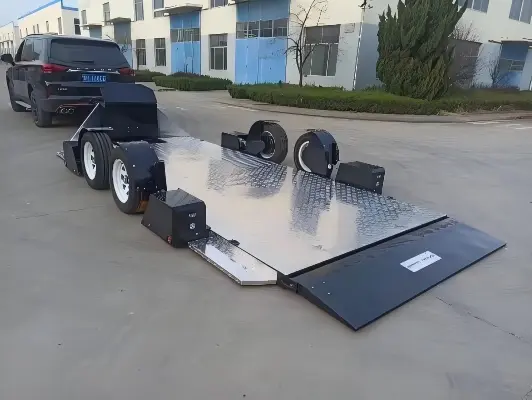 Construit cu o structură de înaltă rezistență, vehiculul integrează trei sisteme de bază: suspensie independentă, frânare electromagnetică și ridicare hidraulică controlată de la distanță. Echilibrează capacitatea de încărcare mare, stabilitatea conducerii și confortul operațional, oferind o experiență de transport sigură, eficientă și fără probleme.