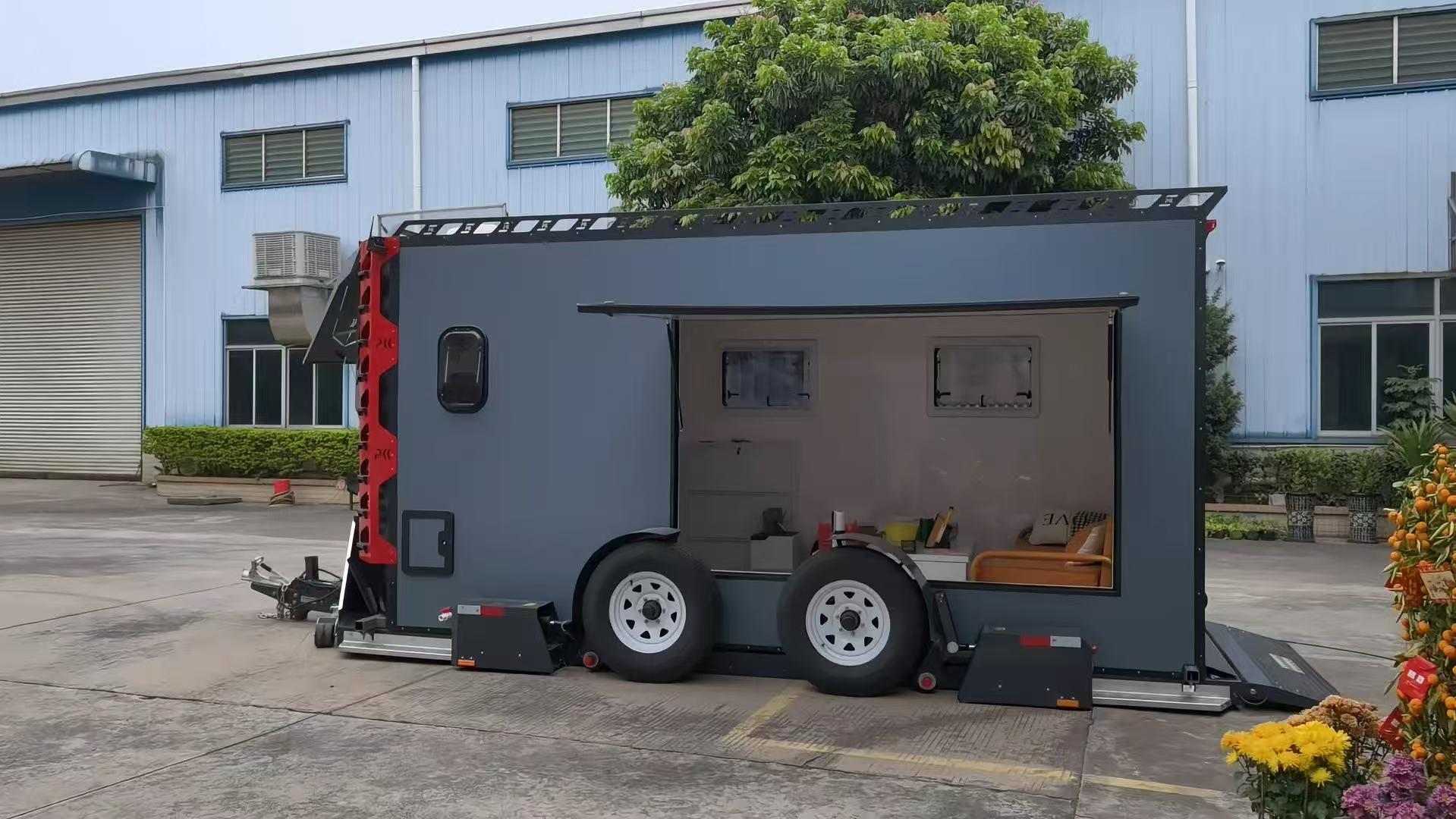 Această remorcă hidraulică de ridicare cu două axe de 2,5 T este proiectată pentru scenarii de transport grele de înaltă eficiență, servind ca transport profesional pentru vehicule, mașini de construcție mici, adăposturi pentru echipamente și alte încărcături.