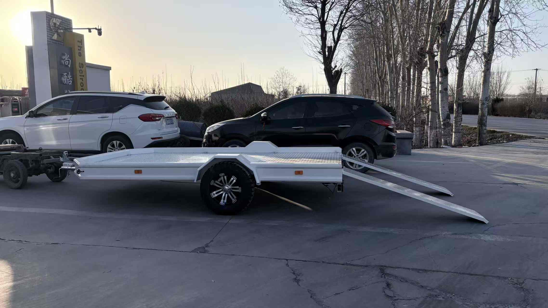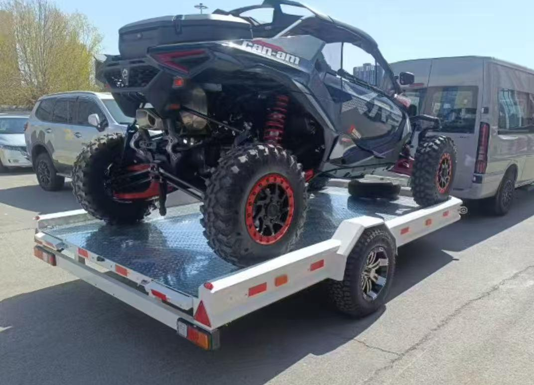 Puntea plată este construită din placă de aluminiu anti-alunecare (sau placă de oțel durabilă), oferind o suprafață de mare tracțiune pentru a preveni deplasarea încărcăturii în timpul transportului. Opțiunea de tablă din aluminiu este ușoară și rezistentă la coroziune, ideală pentru utilizare în aer liber în medii umede sau de coastă, în timp ce platforma din oțel oferă durabilitate maximă pentru sarcini abrazive grele. Designul cu profil redus și rampele integrate fac încărcarea ATV-urilor, UTV-urilor și a echipamentelor mici rapidă și fără efort.